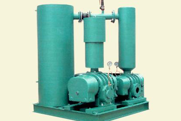 雙級高壓羅茨鼓風機是一種常用的鼓風機,它是一種由兩臺羅茨鼓風機串聯(lián)組成的裝置。每臺風機箱體內(nèi)部均有兩個轉(zhuǎn)向相反的三葉型轉(zhuǎn)子,每個三葉型轉(zhuǎn)子用兩個軸承支撐,利用一對高精度的同步直齒輪,使兩個轉(zhuǎn)子的相對位置始終保持不變,轉(zhuǎn)子之間以及轉(zhuǎn)子與箱體之間保持一定的間隙,無接觸旋轉(zhuǎn)。轉(zhuǎn)子在側(cè)箱體同步齒輪的驅(qū)動下,借助兩轉(zhuǎn)子的“嚙合”,使進氣口與出氣口相互隔開,完成箱體和轉(zhuǎn)子間的密閉氣體從吸入側(cè)到吐出側(cè)的移送過程。在旋轉(zhuǎn)過程中無內(nèi)壓縮地將工作腔內(nèi)的氣體從進氣口推移到出氣口。轉(zhuǎn)子與轉(zhuǎn)子、轉(zhuǎn)子與箱體、轉(zhuǎn)子與墻板之間都有微小間隙,因而工作腔內(nèi)沒有摩擦,無接觸磨損部分。